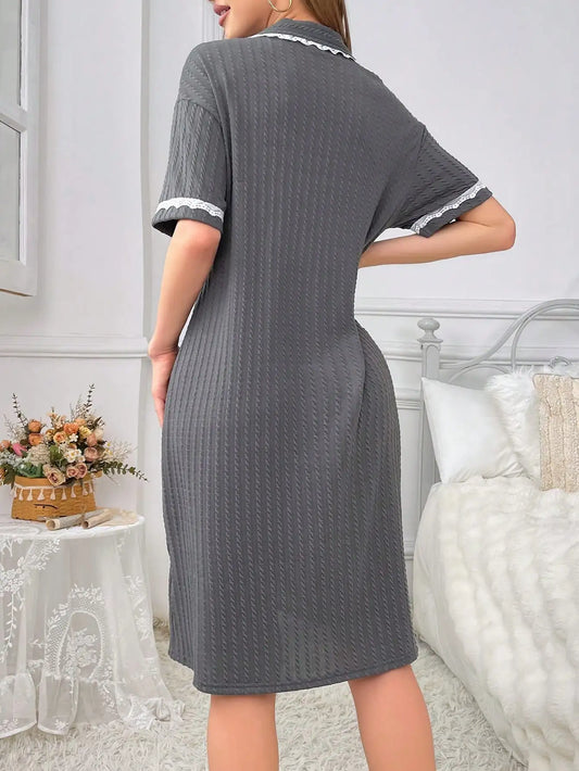 Women's new style lapel short-sleeved nightdress lace